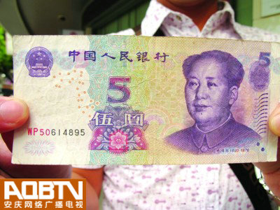 “现役”的5元人民币,正面的“圆”字倒了过来,你可看到过?宿松人张先生两年前在深圳做生意时,就意外收获了一张“圆”字倒立的2005年版5元纸钞,经多家商业银行鉴定均为真币,有广东一位客商甚至出价20万元欲收购,张先生也没舍得卖。如获至宝的他因此对“错币”产生了浓厚的兴趣,但一直苦于不知道该纸币的收藏价值。昨天,张先生想通过本报帮他圆梦,然而,结果却是出人意料。