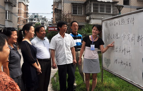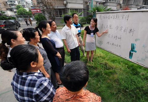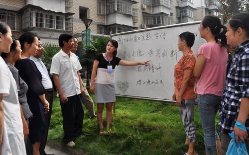 在9月8日“国际扫盲日”到来之际,大观区碟子塘社区结合安庆精神宣传,组织社区居民开展主题教育活动,使“安庆精神”深入人心。9月6日,居民在碟子塘社区诵读安庆精神“八字”标语。