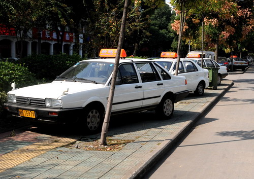 湖心路停放在人行道上的机动车辆 徐勇进 摄