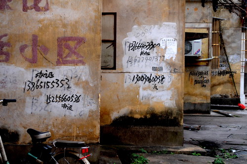 大观区近圣街附近小区内布满了“牛皮癣”。 徐勇进 摄
