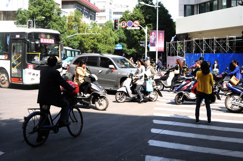 10月17日,记者在我市城区主要交叉路口和繁华路段,对行人、非机动车以及机动车的交通出行状况进行了一番走访调查。