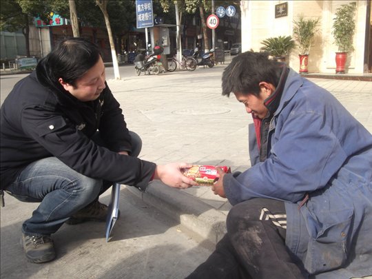 在我市人民路、汽车站和市区一些菜市场,人们总能看到一些衣衫不整的流浪汉在伸手乞讨,一些乞讨者衣服单薄,在这寒冷的冬天里,他们应该得到救助。图为一名露宿街头的流浪汉在救助人员的劝说下,被送到市救助管理站。