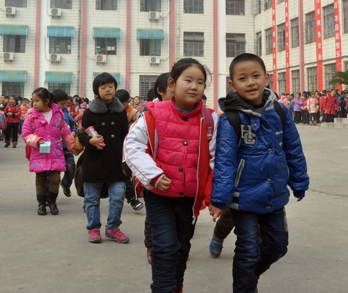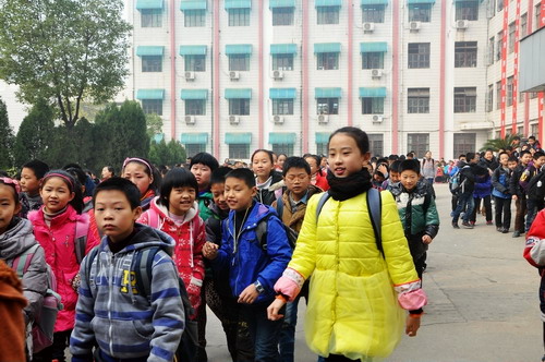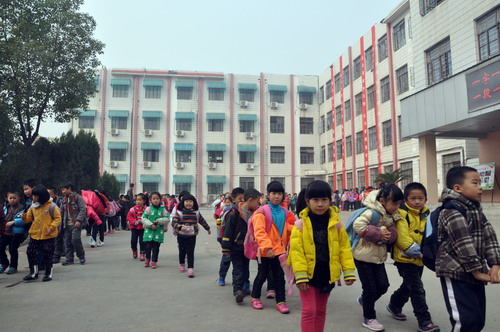 12月6日中午11时许,石化一小的学生中午放学。 见习记者 雷琳琳 摄