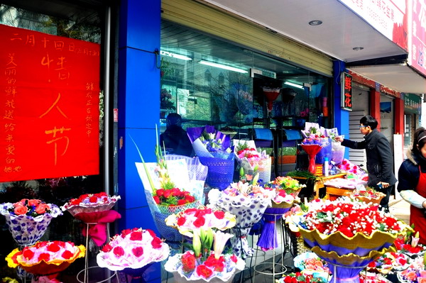 2月14日,既是西方情人节,又是中国的元宵节。元宵节也是传统的中国情人节,中西方情人节“喜相逢”,当天我市玫瑰热销。图为一市民在集贤南路某鲜花店内选购玫瑰。见习记者 雷琳琳 摄