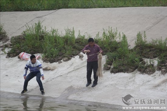 4月22日下午,在长江安庆段顺安河泵站闸口,有人正在撒网捕鱼。徐火炬 摄