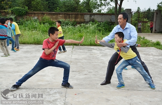 下午3点钟,在周潭镇彭桥村小学的操场上,记者见到了一群正在上武术课的四年级学生。从2012年开始,彭桥村小学开设了每周两次的武术特色教育课程,即将退休的老校长章友武成了孩子们的专职武术教师。除了教授拳腿基本功之外,章友武还悉心编排了武术操,将武术动作融入一些表演成分,有利于激发孩子们的兴趣,视觉效果也更好。