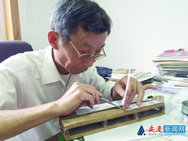 上个世纪70年代,从黄山林校毕业的汪荣发被分配到望江,从事林业工作。不过与昆虫结缘还得从1979年说起。“那时国家林业部在全国范围内组织了一次森林病虫害普查,我被挑中参加普查。”汪荣发告诉记者,经过林业专家的培训后,他们以县为单位,开始进行普查工作,制作昆虫标本也是那时学会的。