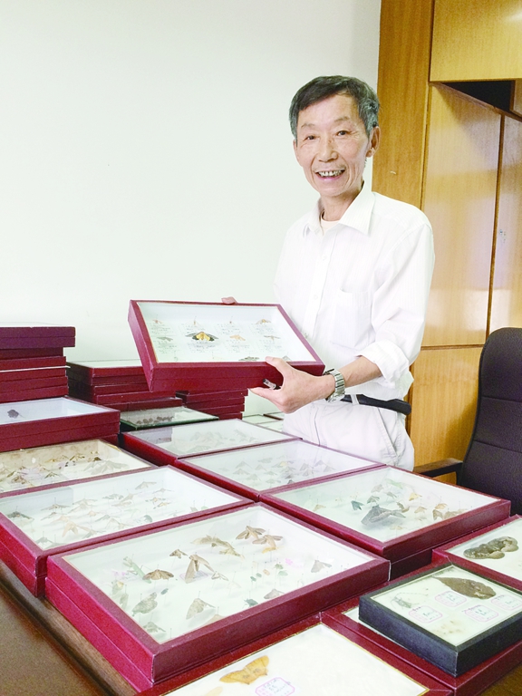 汪荣发和他的部分昆虫标本。