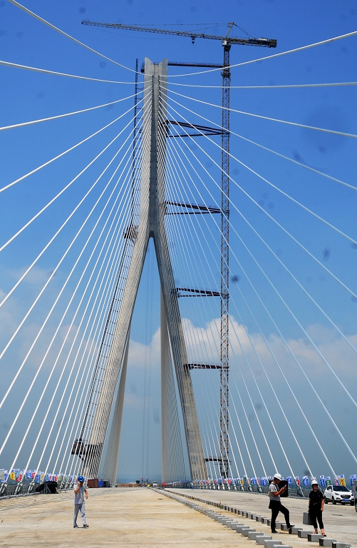 大桥主跨638米为目前同类型桥梁跨度的世界第一