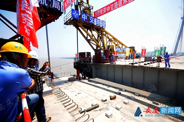 蛟龙踏水贯通南北,长虹卧波造福两岸。广大建设者正在用勤劳、智慧、汗水,在八百里皖江上游为世界奉献一个精品工程。